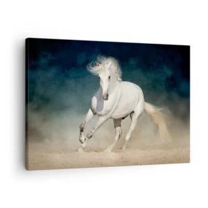 Impression sur toile - Image sur toile - Un cheval blanc galopant dans un ciel flou - 70x50cm - La liberté à l'état pur - Décoration murale moderne pour le salon et la chambre ARTTOR