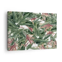 Impression sur toile - Image sur toile - Un motif de feuille décoratif dans des tons de vert et de bordeaux sur un fond clair - 70x50cm - Arbuste émeraude-lilas - Décoration murale moderne pour le salon et la chambre ARTTOR