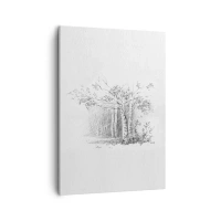Impression sur toile - Image sur toile - Un dessin d'une forêt de bouleaux dans un croquis au crayon subtil - 50x70cm - Lumière d'une forêt de bouleaux - Décoration murale moderne pour le salon et la chambre ARTTOR