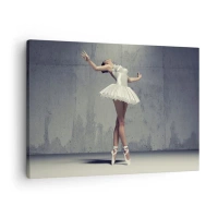 Impression sur toile - Image sur toile - Une danseuse de ballet en robe blanche contre un mur brut. - 70x50cm - Léger comme un oiseau - Décoration murale moderne pour le salon et la chambre ARTTOR