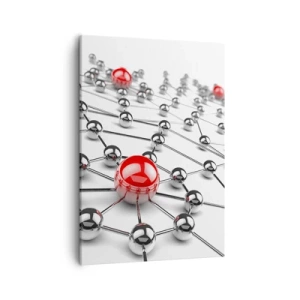 Impression sur toile - Image sur toile - Un réseau de boules métalliques aux accents rouges - 50x70cm - Toile argentée - Décoration murale moderne pour le salon et la chambre ARTTOR
