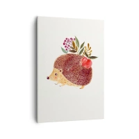 Impression sur toile - Image sur toile - Un hérisson mignon avec une pomme et des plantes dans un style illustratif - 50x70cm - Et tu m’apprécies déjà - Décoration murale moderne pour le salon et la chambre ARTTOR
