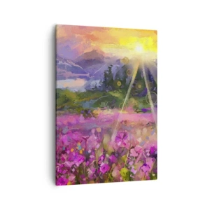 Impression sur toile - Image sur toile - Une prairie pittoresque sous les rayons du soleil couchant - 50x70cm - Dans la vallée à l'abri du soleil - Décoration murale moderne pour le salon et la chambre ARTTOR