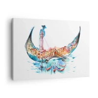 Impression sur toile - Image sur toile - Une composition à l'aquarelle de Venise en forme de gondole - 70x50cm - Nous naviguons à travers la ville - Décoration murale moderne pour le salon et la chambre ARTTOR