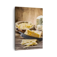 Impression sur toile - Image sur toile - Un plateau de fromages avec différents types sur une table en bois - 50x70cm - Sourire au fromage - Décoration murale moderne pour le salon et la chambre ARTTOR