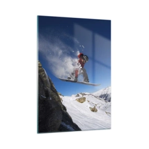 Impression sur verre - Image sur verre - Un snowboarder saute sur fond de montagne - 50x70cm - Et tu es devenu une partie de l'espace - Décoration murale moderne pour le salon et la chambre ARTTOR