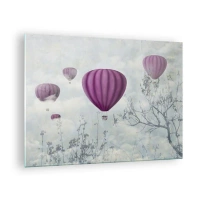 Impression sur verre - Image sur verre - Des ballons violets flottant parmi les nuages et les branches des arbres - 70x50cm - Comme des navires dans le ciel - Décoration murale moderne pour le salon et la chambre ARTTOR