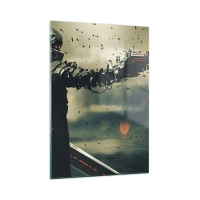 Impression sur verre - Image sur verre - Une illustration sombre d'un groupe de personnages dans le brouillard - 50x70cm - Fais attention! Ils arrivent - Décoration murale moderne pour le salon et la chambre ARTTOR