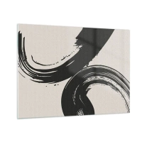 Impression sur verre - Image sur verre - Coups de pinceau calligraphiques noirs et dynamiques sur fond clair. - 70x50cm - Balayage circulaire - Décoration murale moderne pour le salon et la chambre ARTTOR