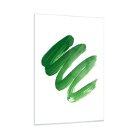 Impression sur verre - Image sur verre - Coup de pinceau vert dynamique sur fond blanc - 50x70cm - Blague verte - Décoration murale moderne pour le salon et la chambre ARTTOR
