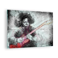 Impression sur verre - Image sur verre - Portrait artistique d'un musicien avec une guitare électrique - 70x50cm - Sur les vagues de la musique - Décoration murale moderne pour le salon et la chambre ARTTOR
