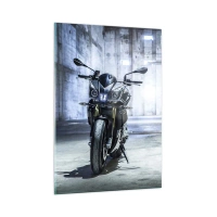 Impression sur verre - Image sur verre - Une moto dans un intérieur industriel avec des murs en béton - 50x70cm - Avant que le moteur ne rugisse - Décoration murale moderne pour le salon et la chambre ARTTOR