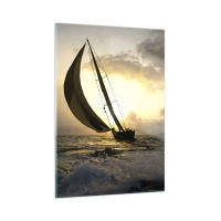 Impression sur verre - Image sur verre - Voiliers dans une mer agitée au coucher du soleil - 50x70cm - Avec le vent et contre le vent - Décoration murale moderne pour le salon et la chambre ARTTOR