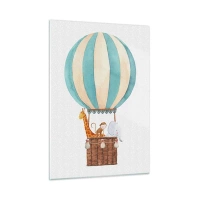 Impression sur verre - Image sur verre - Un ballon avec une girafe, un singe et un éléphant sur fond blanc - 50x70cm - Voyage fantastique - Décoration murale moderne pour le salon et la chambre ARTTOR