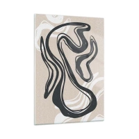 Impression sur verre - Image sur verre - Ligne noire expressive sur fond beige dans un style abstrait. - 50x70cm - Expression multipliée - Décoration murale moderne pour le salon et la chambre ARTTOR