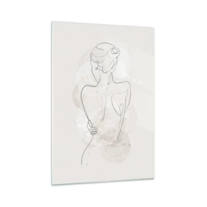 Impression sur verre - Image sur verre - Un croquis délicat d'une femme sur un fond clair - 50x70cm - Comme un instrument sensible - Décoration murale moderne pour le salon et la chambre ARTTOR