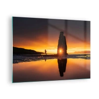 Impression sur verre - Image sur verre - Coucher de soleil avec une silhouette humaine et une formation rocheuse - 70x50cm - Juste vous et la nature - Décoration murale moderne pour le salon et la chambre ARTTOR