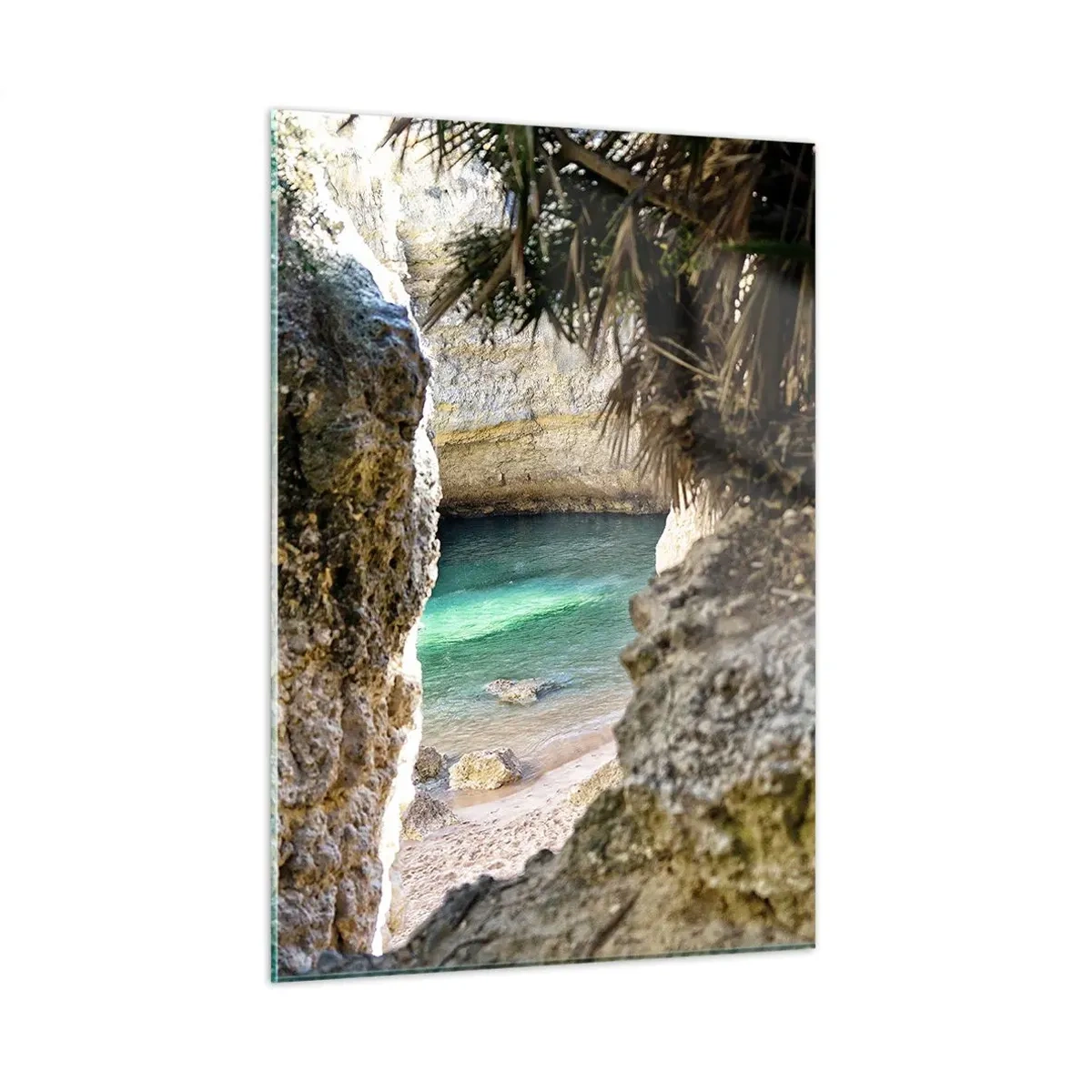 Impression sur verre - Image sur verre - Feuilles de palmier en plein jour - 50x70cm - Evantail sous les tropiques - Décoration murale moderne pour le salon et la chambre ARTTOR