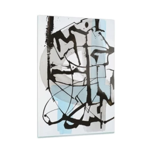 Impression sur verre - Image sur verre - Composition abstraite avec un croquis noir et des taches bleues - 50x70cm - Bleu malgré tout - Décoration murale moderne pour le salon et la chambre ARTTOR