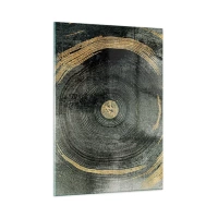 Impression sur verre - Image sur verre - Coupe transversale d'un tronc d'arbre avec détails et accents dorés - 50x70cm - Changement et persistance - Décoration murale moderne pour le salon et la chambre ARTTOR