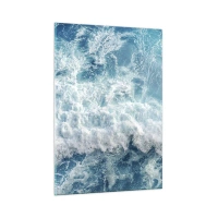 Impression sur verre - Image sur verre - Des vagues bleues s'écrasant sur le rivage - 50x70cm - Joyeusement et en sautant - Décoration murale moderne pour le salon et la chambre ARTTOR