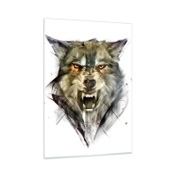 Impression sur verre - Image sur verre - Un graphique d'un loup menaçant avec une bouche ouverte et un regard intense - 50x70cm - Pas un pas ! - Décoration murale moderne pour le salon et la chambre ARTTOR