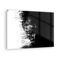 Impression sur verre - Image sur verre - Une peinture abstraite en noir et blanc représentant des lignes en forme d'arc. - 70x50cm - Dans un instant... - Décoration murale moderne pour le salon et la chambre ARTTOR
