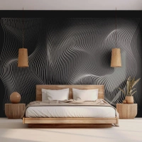 Papier Peint Photo Premium Sand - Des vagues de lumière hypnotisantes sur fond noir - 100x70cm - Danse de lumière dans l'espace - Décoration murale moderne pour le salon et la chambre ARTTOR