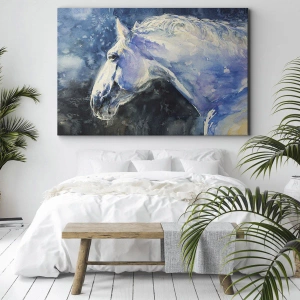 La toile « Portrait dans une lueur bleue » est une décoration extrêmement subtile et artistique qui représente un portrait de cheval dans des tons bleus. La technique de l'aquarelle confère à l'ensemble légèreté et délicatesse, créant un effet visuel unique.