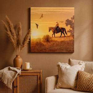 • Cheval, Cowboy, Paysage, Paysages, Personnes, Nature, Animaux, Pour le bureau, Pour le bureau, Pour la salle à manger, Pour le hall, Pour le salon, Pour la chambre, Brun, Verticale
