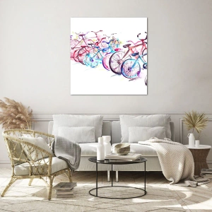 Impression sur verre - Image sur verre - Vélos colorés de style aquarelle - 50x70cm - Congrès du club Antymoto - Décoration murale moderne pour le salon et la chambre ARTTOR