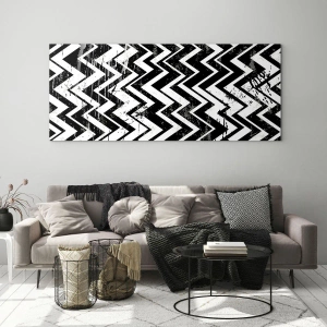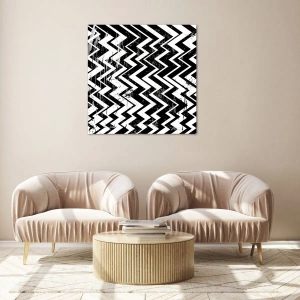 Impression sur verre - Image sur verre - Un motif en zigzag noir et blanc avec une composition et une texture dynamiques. - 50x70cm - Zig-blanc, zag-noir - Décoration murale moderne pour le salon et la chambre ARTTOR