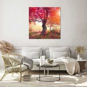 Ce tableau s'intégrera parfaitement dans un salon, une chambre ou une salle à manger, apportant calme et confort à votre intérieur. Le brouillard flottant en arrière-plan renforce l'impression de profondeur et d'harmonie, rendant la décoration incroyablement inspirante. L'impression haute qualité sur verre garantit durabilité et couleurs vives.