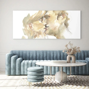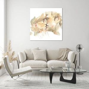 Impression sur verre - Image sur verre - Aquarelle romantique représentant un baiser d'amoureux - 50x70cm - A moitié trouvé ? - Décoration murale moderne pour le salon et la chambre ARTTOR