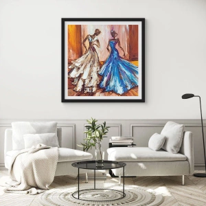 - Cette affiche représente deux femmes en robes élégantes sur un fond doré artistique. Idéale pour les intérieurs raffinés et classiques, elle est disponible avec un cadre noir.