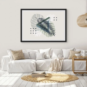 Affiche dans un cadre noir - Poster - Composition géométrique avec des feuilles tropicales dans des tons verts - 100x70cm - Nature et géométrie - deux odres? - Décoration murale moderne pour le salon et la chambre ARTTOR