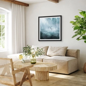 - Cette affiche d'ambiance représente un cerf dans la brume matinale d'une forêt. Parfaite pour les intérieurs de style scandinave, elle apporte paix et harmonie.