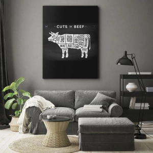 Impression sur toile - Image sur toile - Diagramme des coupes de bœuf sur fond noir - 50x70cm - L'art de la découpe - Décoration murale moderne pour le salon et la chambre ARTTOR