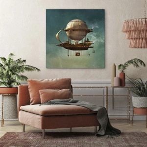 - Ce tableau représente un dirigeable fantastique de style rétro sur fond de ciel étoilé verdâtre. Une décoration qui évoque l'inspiration et l'esprit d'aventure.