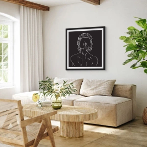 Affiche dans un cadre noir - Poster - Silhouette minimaliste d'une femme sur fond noir - 70x50cm - La beauté s'épanouit en silence - Décoration murale moderne pour le salon et la chambre ARTTOR