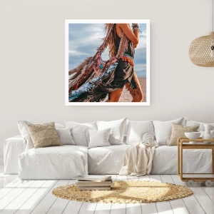 Affiche - Poster - Une femme dans un style bohème avec des détails de plumes et de bijoux - 100x70cm - La fille du chaman - Décoration murale moderne pour le salon et la chambre ARTTOR