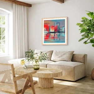 Affiche dans un chêne clair - Poster - Un paysage dans une dimension inconnue - 60x60 cm