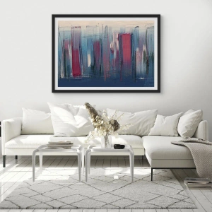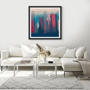 Affiche dans un cadre noir - Poster - Composition verticale en bleu et rouge - 30x30 cm