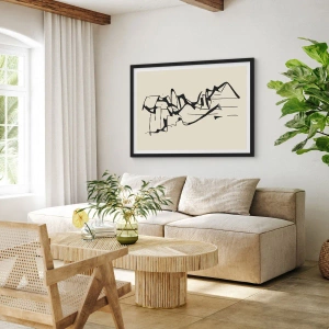Affiche dans un cadre noir - Poster - Composition abstraite en noir et blanc de lignes et de formes - 50x70cm - Peut-être un paysage - Décoration murale moderne pour le salon et la chambre ARTTOR