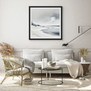 Affiche dans un cadre noir - Poster - Une plage aux tons sobres de gris et de bleu - 70x50cm - Ensemble depuis toujours - Décoration murale moderne pour le salon et la chambre ARTTOR