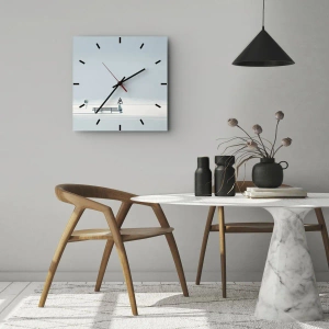 L'horloge est produite avec un verre de sécurité de 4 mm d'épaisseur. La technologie de fabrication de l'horloge est conforme à la classe de sécurité 2B2 selon la norme PN-EN 12600 : 2004, qui garantit la résistance aux chocs. L'horloge en verre est prête à être accrochée - elle a une attache en métal attaché à l'arrière et une entretoise en mousse régulant la distance uniformément de l'horloge par rapport au mur. L'horloge a un mécanisme flottant silencieux alimenté par une pile 1.5V - pile AA (pile non incluse).