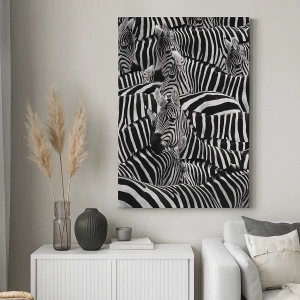 Impression sur toile - Image sur toile - Portrait collectif à rayures - 100x40 cm