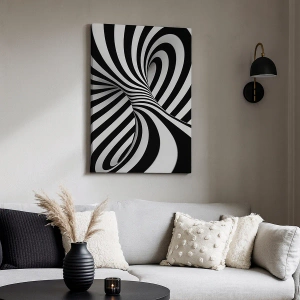 Impression sur toile - Image sur toile - Tunnel abstrait avec des rayures en spirale noires et blanches - 70x50cm - Composition : espace de danse - Décoration murale moderne pour le salon et la chambre ARTTOR