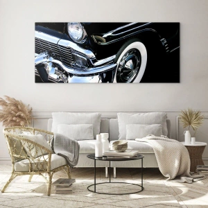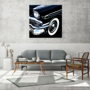 Tableau mural - Classique en argent, noir et blanc - Gros plan d'une voiture noire vintage avec détails chromés