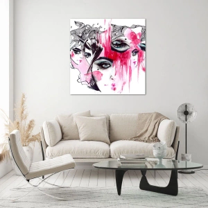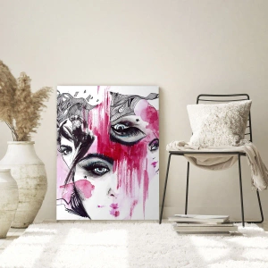 Le fond du tableau est conservé dans des couleurs neutres, ce qui permet de se concentrer sur les détails des visages et les accents artistiques. Chaque détail, des lignes de l'esquisse à l'intensité des éléments roses, a été soigneusement conçu pour transmettre l'émotion et la profondeur de la composition. Cette œuvre d'art s'intègre parfaitement aux intérieurs modernes où originalité et esthétique sont primordiales.